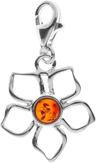 Damen-Charm-Anhänger 925/000 Sterlingsilber mit Bernstein, Blüte 0020200580890