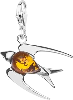 Damen-Charm-Anhänger 925/000 Sterlingsilber mit Bernstein, Schwalbe 0020200200890