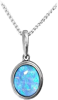 Blauer Opal Anhänger, oval, Sterling Silber mit Opal in lebendiger Farbe, Halskette