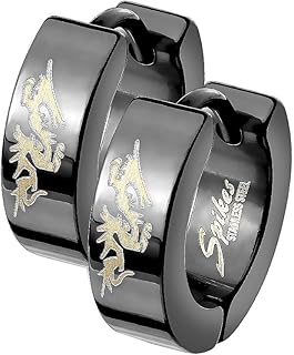 Unisex Creolen Edelstahl Bicolor Damen Herren Klapp Ohrringe Huggie Kreolen Rund Breit Dragon Schwarz