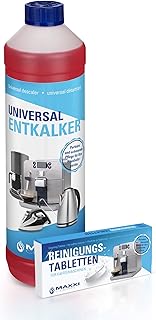 MAXXI CLEAN 1x Flüssigentkalker 750ml + 10x Reinigungstabletten Kombi für Kaffeevollautomaten, Kaffee-Maschine, Kaffeepadmaschinen, Kalklöser, Kalk-Reiniger