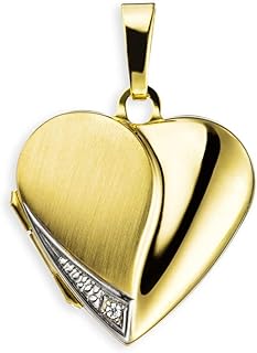 Damen Medaillon Herz für 2 Fotos 333 Gold Gelbgold matt Anhänger zum Öffnen