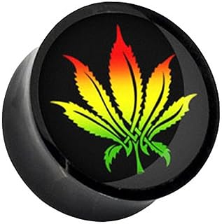 Ohr Plug Flesh Tunnel Piercing Ohrpiercing Saddle Kunststoff Schwarz Hanfblatt