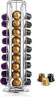 MaxMiuly Nespresso Kapselhalter Rotierend für Nespresso Kapseln, Drehbar Kaffee Kapselständer für 40 Nespresso Kaffeepads, Nespresso Kapselspender Zubehör Silber Chrom Haltbar
