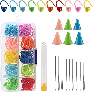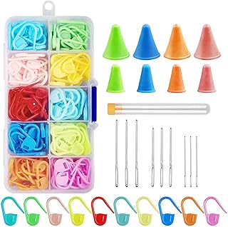 Anyasen Maschenmarkierer 141pcs Stricken zubehör strickmarkierer maschenmarkierer Garn Stich Halter Set Maschenmarkierern Klip mit Groß Auge Stumpfe Nadel Strick Stricken Häkeln Locking Stitch