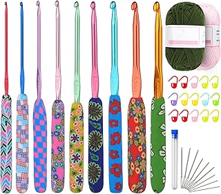 Coopay Häkelnadeln Set, 9 Stücke Bunte Häkelnadeln mit Wolle Maschenmarkierer und Stopfnadeln, Häkeln Stricken Nadeln 2,0 - 6,0 mm, Ergonomische Weich Griff Häkelnadeln, Geschenk für Großmutter/Mutter