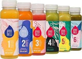 Marko Krsmanovic, Gründer, Geschäftsführer und Saft-Maître von pressbar: „Mit unseren Cleanse Säften kannst du deine Ernährung optimieren und dich ganz Genussvoll ernähren - mit extra Portion Vitaminen, Mineralien und Ballaststoffen. Deine Ernährung ausgewogener gestalten: mehr Gemüse und Obst, weniger Fleisch und Fett - und das absolut genussvoll. Wir würden uns freuen, wenn wir dich dabei unterstützen dürfen!" Details anzeigen. Dieser Artikel: Pressbar Saftkur - 18 Säfte für 3 Tage Kur - 6 Säfte pro Tag - Hochwertige Obst & Gemüse Säfte - Achtung Kühlware, nach Erhalt sofort kühlen. Inkl. 4,50 € Einwegpfand (18 x 0,25 €). 82,90 € (18,42 €/l) Gewöhnlich versandfertig in 2 bis 3 Tagen. Versandt und verkauft von pressbar.