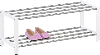 Schuhbank Schuhregal Schuhschrank Schuhablage Schuhständer Schuhaufbewahrung | Holzwerkstoff | Metall | Weiß lackiert | Chromfarben | 2 Ebenen | Für 8 Paar Schuhe | BxHxT: 80x32x30 cm