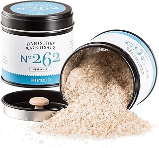 Rimoco N°262 Danish Smoked Salt - Dänisches Wickinger Rauchsalz mit Meesalz aus dem Toten Meer | Meersalz kaltgeräuchert über Buchenholzspähnen | Inhalt: 130g in eleganter Gewürzdose mit Aromadeckel