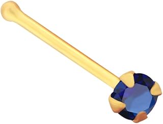 14K Gold Echtgold | Nasenpiercing Nasenstecker Stud | Kristallstein Blau | Stabstärke: 22G (0,6 mm) | Stablänge: 6mm | Steingröße: 1,5mm bis 2,5mm | Hypoallergen