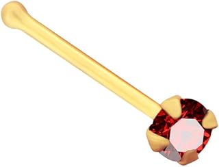 14K Gold Echtgold | Nasenpiercing Nasenstecker Stud | Kristallstein Rot | Stabstärke: 22G (0,6 mm) | Stablänge: 6mm | Steingröße: 1,5mm bis 2,5mm | Hypoallergen