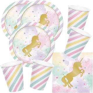 Unbekannt 48-teiliges Party-Set goldenes Einhorn - Unicorn Sparkle - Teller Becher Servietten für 16 Kinder