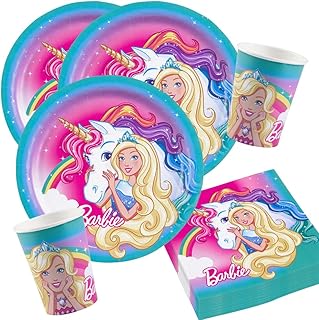 Unbekannt 36-teiliges Party-Set Barbie Dreamtopia mit Einhorn - Teller Becher Servietten für 8 Kinder