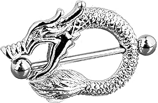 Brustwarzen Piercing Intimpiercing Nippelpiercing Brust Nippel Intim Brustwarzenpiercing Barbell mit Schild Drache Kristall Silber