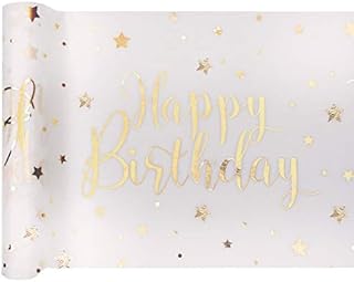 Tischband Tischläufer Happy Birthday weiß Gold 1 Stück