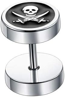 2er Set 316L Edelstahl Ohrstecker Stecker Studs Fake Plug Crossbones Totenkopf Pirat Silber schwarz Biker Herren Damen