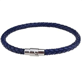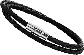 Leder Armband, Edelstahl Echtleder Armband Armreif Lederarmband Manschette Schwarz Braun Silber Geflochten Surfer Wickelarmband Magnet Schließe Herrenarmband Damenarmband, 7,5-8,5 Zoll