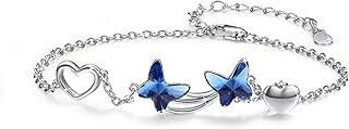 Damen Schmetterling Armband 925 Sterling Silber Blau Kristall Armband Geschenk für Muttertag Mädchen Tier Schmuck Armreif Armkette für Frau Freundin