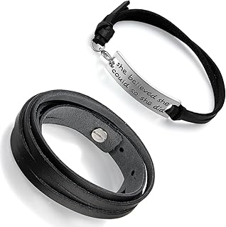 2PCS Herren Damen Armband, Schwarz Wickel Lederarmband Armreif mit She Believed She Could So She Did Gravur Anhänger