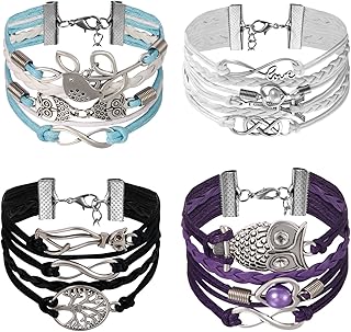 4-8er Unisex Armband Infinity Armkette Lebensblume Love Herz Damen Armband Leder Flügel Lederarmband Schwarz Leder Wickelarmband Vintage Charm Armband Leder