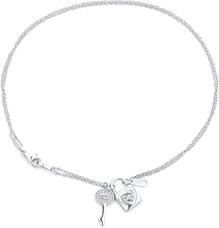Schlüssel Und Schloss CZ Herz Baumeln Charm Fußkettchen Kette Armband Für Damen Sterling Silber Einstellbar