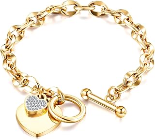 Schmuck Edelstahl Armkette mit Gravur Damenarmband Charmsarmband Herz- Anhänger Armband für Damen Mädchen