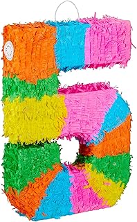 Relaxdays 3 TLG. Pinata Set Geburtstag, Zahl 5, Pinatastab mit Augenmaske, Kinder & Erwachsene, Piñata zum selbst Befüllen, bunt