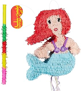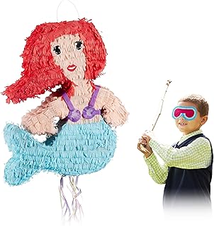 Relaxdays 3 TLG. Pinata Set Meerjungfrau, Pinatastab mit Augenmaske, für Kinder, Stock & Augenbinde, selbst befüllen, Piñata, bunt