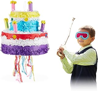 Relaxdays, bunt Pinata Geburtstag Torte, zum Aufhängen, für Kinder, Mädchen, zum selbst Befüllen, aus Papier, Piñata, Geburtstagstorte