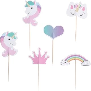 BESTOYARD 24 stücke Einhorn Cupcake Picks Geburtstag Regenbogen Kuchen Topper Cocktail Dekoration Sticks Birthday Party Supplies