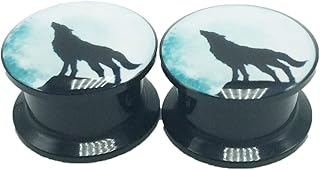 2 Stück Flesh Tunnel Ohrstöpsel Ohr Piercing Schmuck - Ohr Tunnel Plugs/Ohrpiercing Plugs Set/Ohrstecker/Ohr Expander für Gestreckte Ohrlöcher - Öltropfen Wolf Design