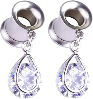 1 Paar Flesh Tunnel Ohrstöpsel Ohr Piercing Schmuck - Ohr Tunnel Plugs/Ohrpiercing Plugs Set/Ohrstecker/Ohr Expander für Gestreckte Ohrlöcher - Klassisch Wassertropfen Zirkon Design