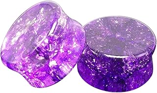 2 Stück Flesh Tunnel Ohrstöpsel Ohr Piercing Schmuck - Ohr Tunnel Plugs/Ohrpiercing Plugs Set/Ohrstecker/Ohr Expander für Gestreckte Ohrlöcher - Exquisit Lila Glas Textur