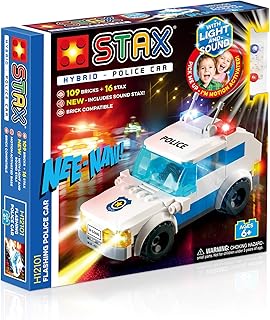 Abanico H12101 - STAX Hybrid - Flashing Police Car, kompatibel mit dem STAX System und allen bekannten Bausteinmarken, mit 109 Bausteinen und 16 STAX