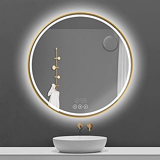 LED Wandspiegel Badezimmerspiegel, Rund Wandspiegel 60cm Antibeschlage mit Beleuchtung 3 Lichtfarbe 3000K-6400K kaltweiß/Neutral/Warmweiß, Badezimmerspiegel mit Zeitanzeig, Touchschalter und Lupe