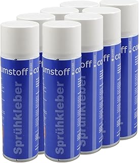 8 Dosen Sprühkleber a 500ml Dose, kräftiger Kleber Sprühdose mit Dosierventil, geruchsarm und transparent