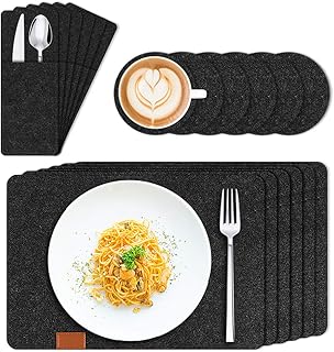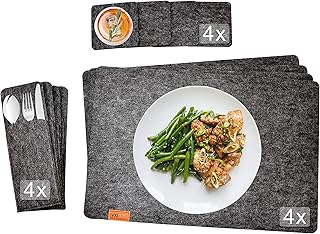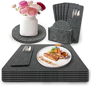 Tischset Platzset aus Filz rutschfest Abwaschbar und Waschmaschinenfest Filzset Tisch-Matten Anthrazit 6 Eckige Platzdeckchen Teller-Untersetzer Besteckbeutel 2 Vasenmatte 1 Untersetzer Set of 21