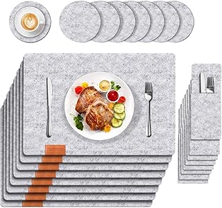 AngLink 18er Set Premium Tischset Platzset aus Filz rutschfest Ab-waschbar und Waschmaschinenfest Eckige Platzdeckchen Teller-Untersetzer Filzset Tisch-Matten Platz-Matten