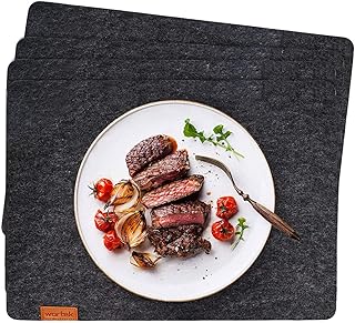 wortek Filz 4er Platzset aus Filz, Tischset Abwaschbar, abwischbar Platzdeckchen Tisch-Untersetzer Teller-Untersetzer Filzset - Platz-Matte Tisch-Matte Filz-Matte Untersetzer Dunkelgrau 44x32 cm