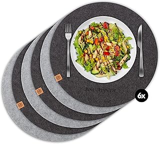 Soutas Filz Untersetzer / 6er Set / 2-farbig/Runde Platzset abwaschbar/Tischset/Anthrazit Grau/Tischunterlagen/Filzuntersetzer/Filz Unterlagen/Platzset abwischbar/Platzdeckchen/Ø 38cm