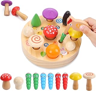 Ulikey Specht Raupen Fangen Spiel, Montessori Spielzeug, Specht Pilzernte Fangen Spiel, Holz Sortieren Pilz-Ernte Developmental Geschenke, Lernspielzeug für Jungen und Mädchen (Farbe 1)
