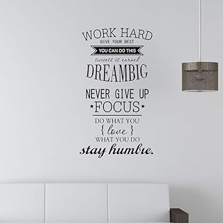 Pdrui Wandtattoo für Büro, Work Hard Wandsticker als Wanddekoration für Studio Wohnzimmer Schlafzimmer 56×100cm Wand Aufkleber | Flur Diele Wohnzimmer selbstklebend Sticker Aufkleber Wandaufkleber