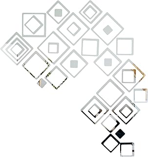 MicButty Spiegel Wandaufkleber, 36 Stück Selbstklebend spiegel Wandaufkleber Acryl Wandspiegel Aufkleber Sticker für Junge Mädchen Kinderzimmer Schlafzimmer Wohnzimmer (Silber, 200 x 200 mm)