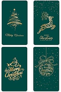 Cymeosh 12 Blatt Weihnachtskarten mit Umschlägen Set, Grün Weihnachten Klappkarten Blanko Postkarten Grußkarten, Schönsten Weihnachtsgrüße für Kinder Familie Freunde Kunden