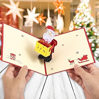 Pop-Up Karte Weihnachtsmann - Weihnachtskarten mit Umschlag Set,Geldgeschenk Weihnachten für Kinder, Frauen und Männer - Handgemachte Geschenkkarten für Freundin oder Freund