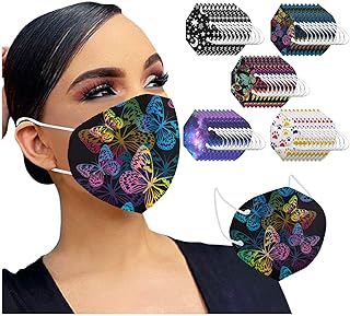 10/50/100 Stück Erwachsene Mundschutz 5 Lagige Schutz_Maske mit Bunt Schmetterling Motiv,Schwarz 5 Lagige Mund und Nasenschutz Staubdicht Mund-Nasen Bedeckung Atmungsaktiv für Damen Herren