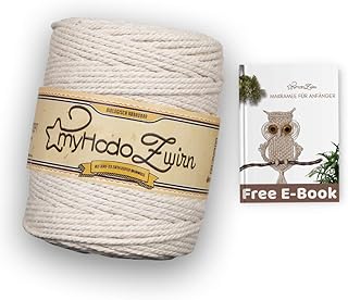 myHodo Makramee Garn (3mm x 125m) aus Oeko-TEX Baumwolle inkl. E-Book Makramee für Anfänger, Textilgarn für DIY Macrame Wandbehang, Baumwollgarn, Garn zum Basteln mit Anleitung, Macrame (Natur)