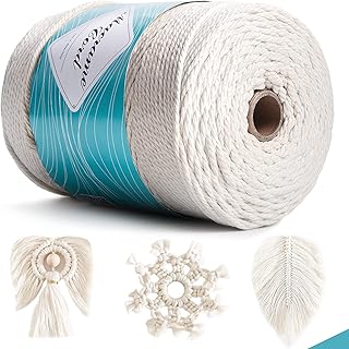Makramee Garn 3mm x 3M Baumwollgarn, 4 Stränge Gedrehte Baumwollkordel Naturfarbene Macrame Cord Ideal für ANFÄNGER und HANDWERKER,um Makramee Vorhang,Wandbehang,Untersetzer,Traumfänger zu Erstellen